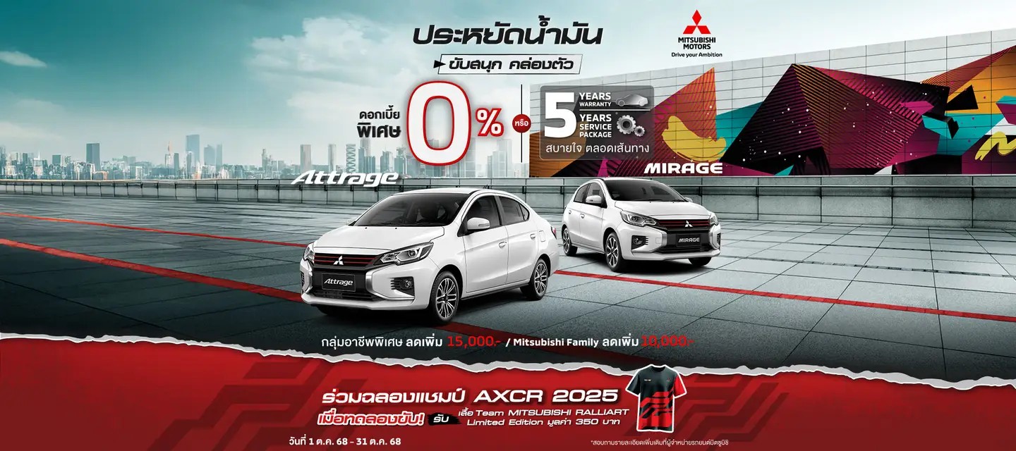 สำหรับลูกค้าที่ซื้อรถยนต์มิตซูบิชิ แอททราจ หรือ มิตซูบิชิ มิราจ ระหว่างวันที่ 1 ตุลาคม 2568 – 31 ตุลาคม 2568